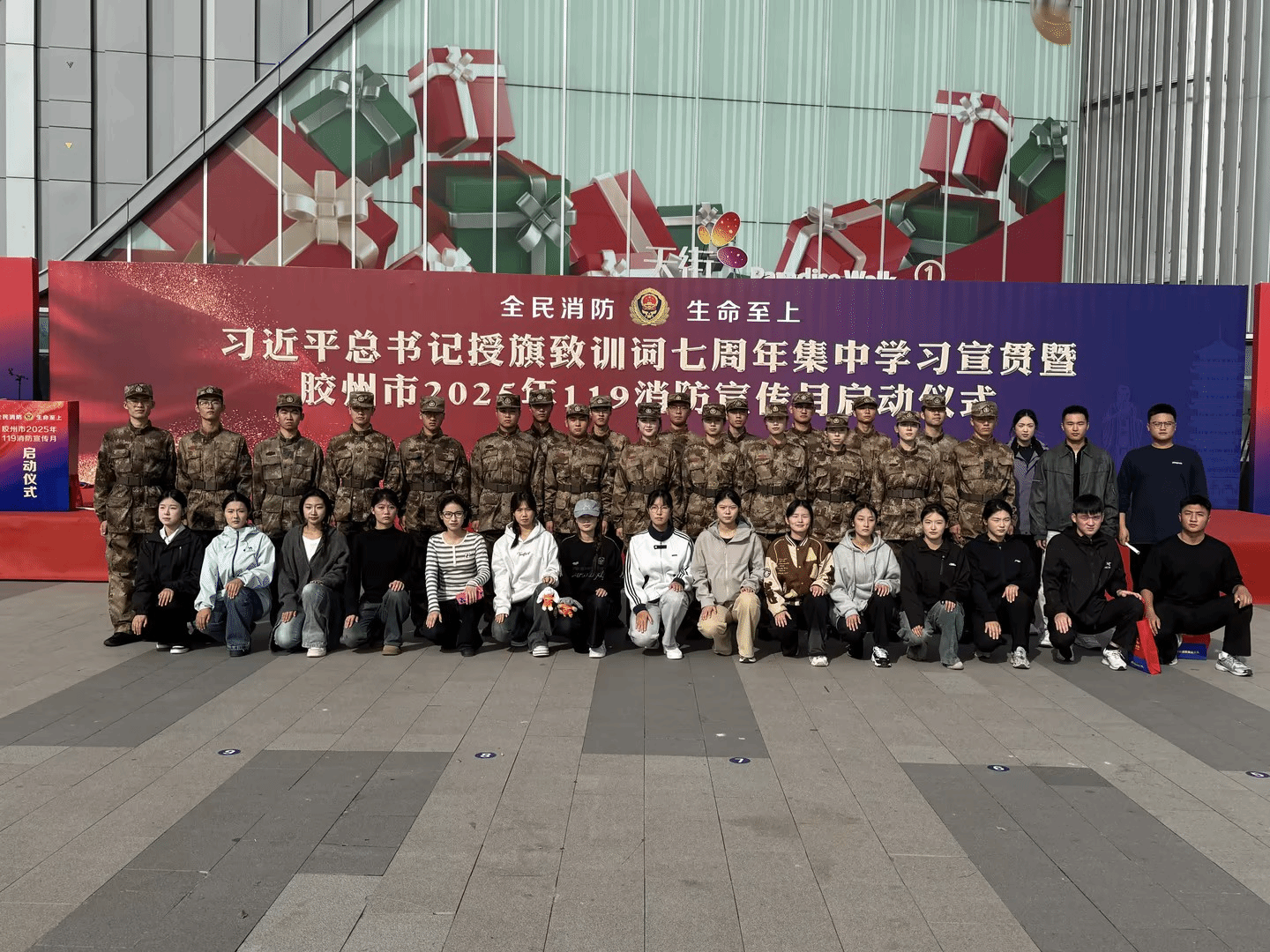 2025年11月7日上午,习近平总书记授旗致训词七周年集中学习宣贯暨2025年胶州市“119”消防宣传月启动仪式在胶州龙湖天街广场隆重举行,青岛工学院安全管理处及筑梦青工红旗连参加了此次活动。